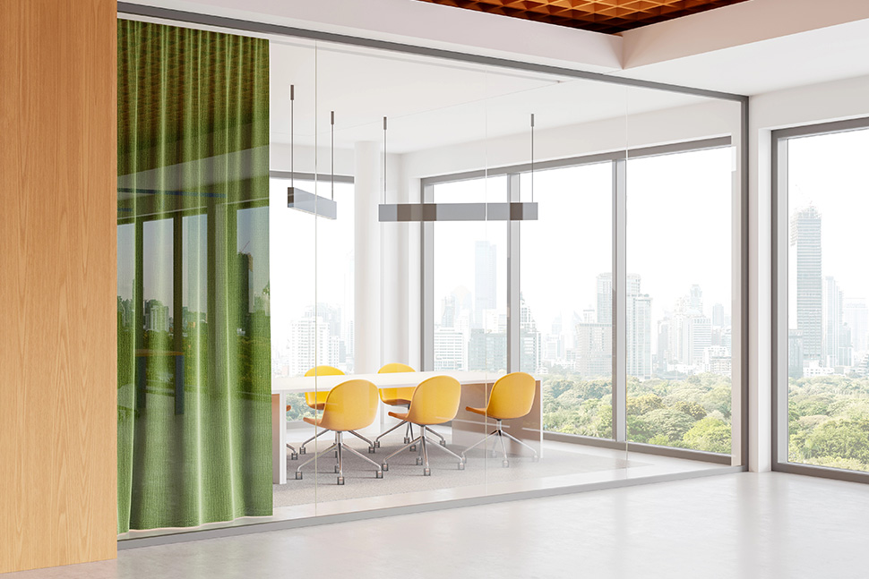 Im Objekt zählt Funktion meist genauso wie das Zertifikat. Viele Geschäftskunden brauchen Vorhänge, die zuverlässig blickdicht sind oder Räume wirklich abdunkeln. „Blickdicht“ heisst dabei nicht automatisch „verdunkelnd“: Für Schulungen, Beamer-Setups oder Hotelzimmer ist oft eine echte Verdunkelung gefragt. Dafür werden spezifische Verdunkelungsqualitäten oder mehrlagige Lösungen eingesetzt – zum Beispiel ein dekorativer Vorhang plus Verdunkelungslage dahinter. Solche Kombinationen wirken hochwertig, sind flexibel im Alltag und erfüllen technische Anforderungen besser als ein „Ein-Stoff-für-alles“-Ansatz.